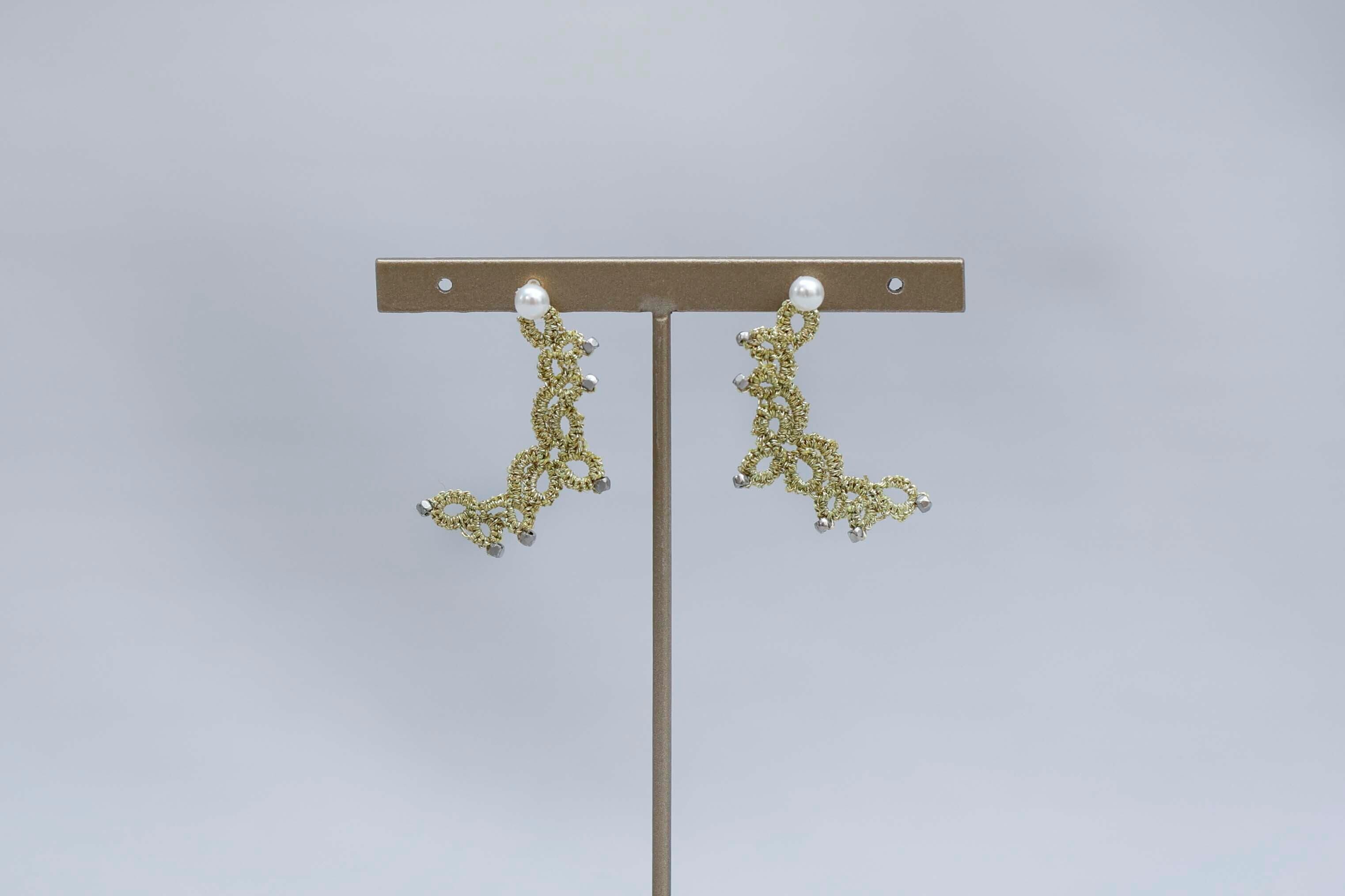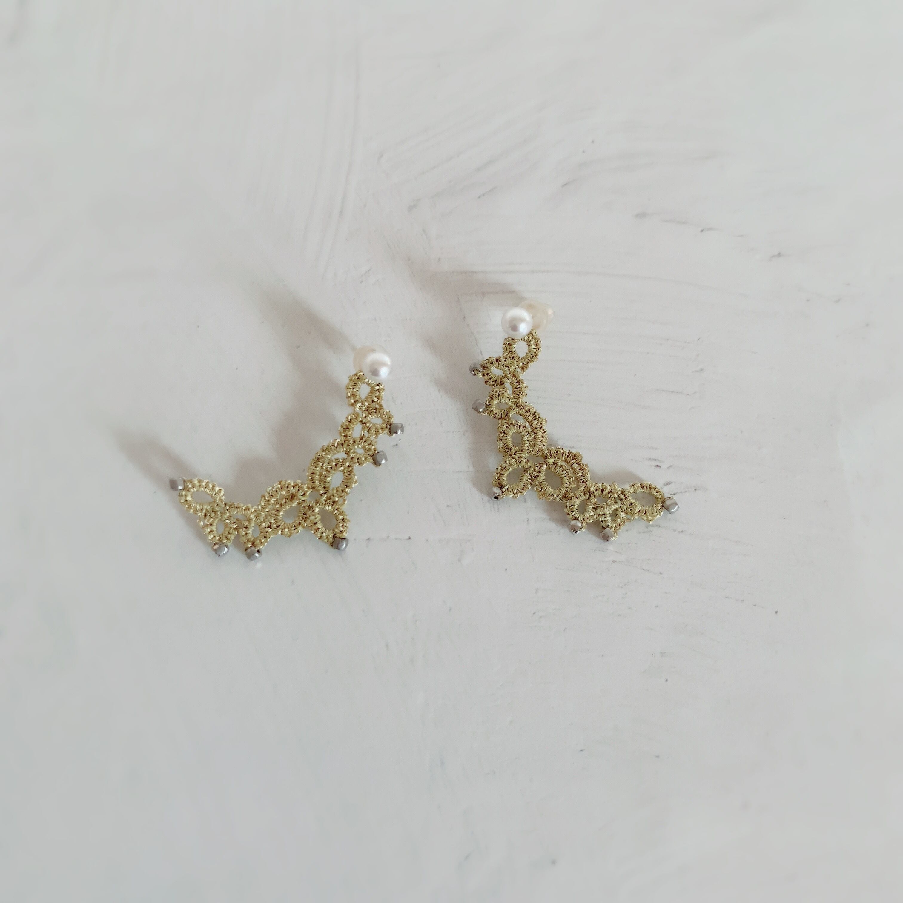 タティンググレースの三日月型のピアスになります。大きさは長さ約3センチ、幅は一番太いところで約1センチとなります。
